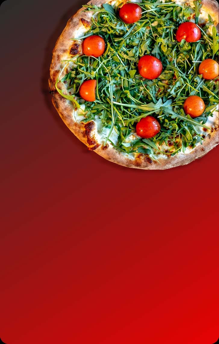 sos de rosii, mozzarella, salam, carnaciori afumati, bacon, ciuperci, masline, ardei, rosii
