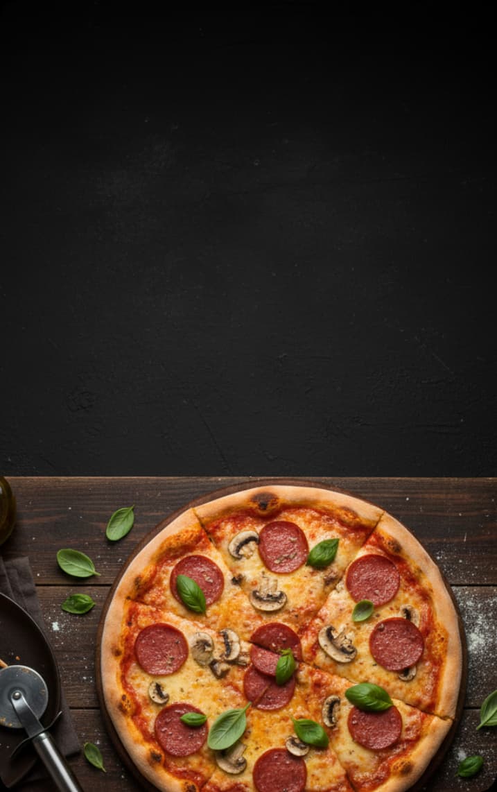 sos de rosii, mozzarella, sunca praga, salam, ciuperci, masline